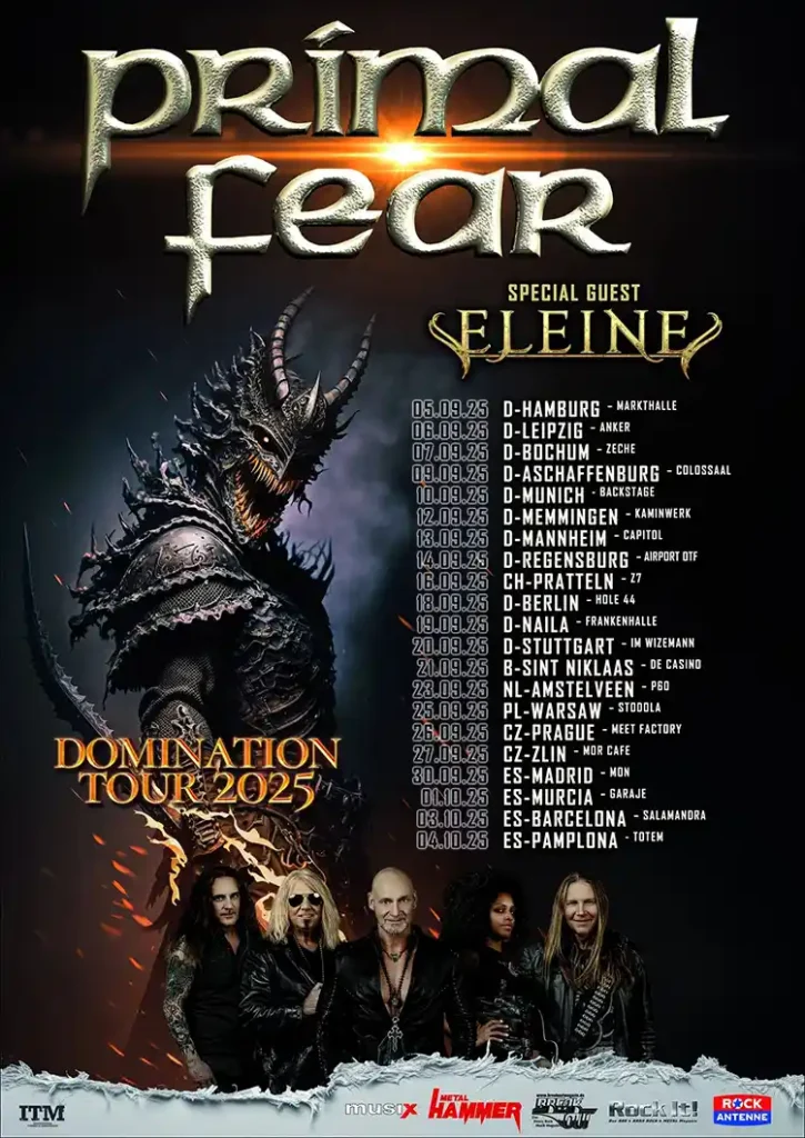 El sello Reigning Phoenix Music lanzó ayer al mercado el decimoquinto álbum de los alemanes Primal Fear “Domination”, producido por Mat Sinner y coproducido por Ralf Scheepers y el guitarrista Magnus Karlsson, mezclado y masterizado por Jacob Hansen, en los Hansen Studios (Dinamarca). Para promocionarlo la formación ha estrenado el Lyric Video correspondiente al tema “I Am The Primal Fear”, producido por Ingo Spörl (Omni Sensus Media). Una poderosa declaración del legado de la banda y una muestra de su sonido inconfundible.